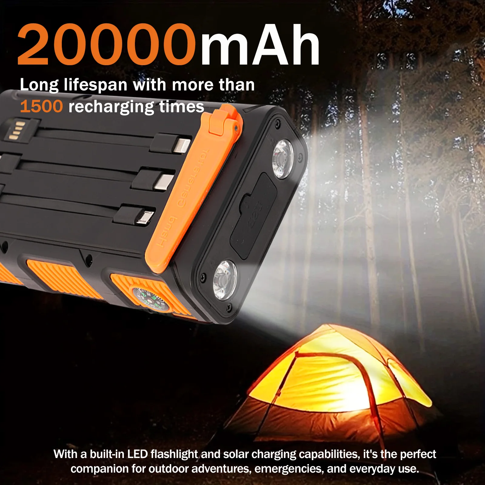 With a massive 20,000 mAh battery, this solar power bank provides plenty of capacity to charge multiple devices, such as smartphones, tablets, cameras, and more. It can complete multiple charge cycles for modern high-capacity devices, ensuring you stay connected and productive throughout the day. Ideal for travelers, outdoor enthusiasts, or anyone needing reliable power storage, this device minimizes disruptions caused by low batteries.