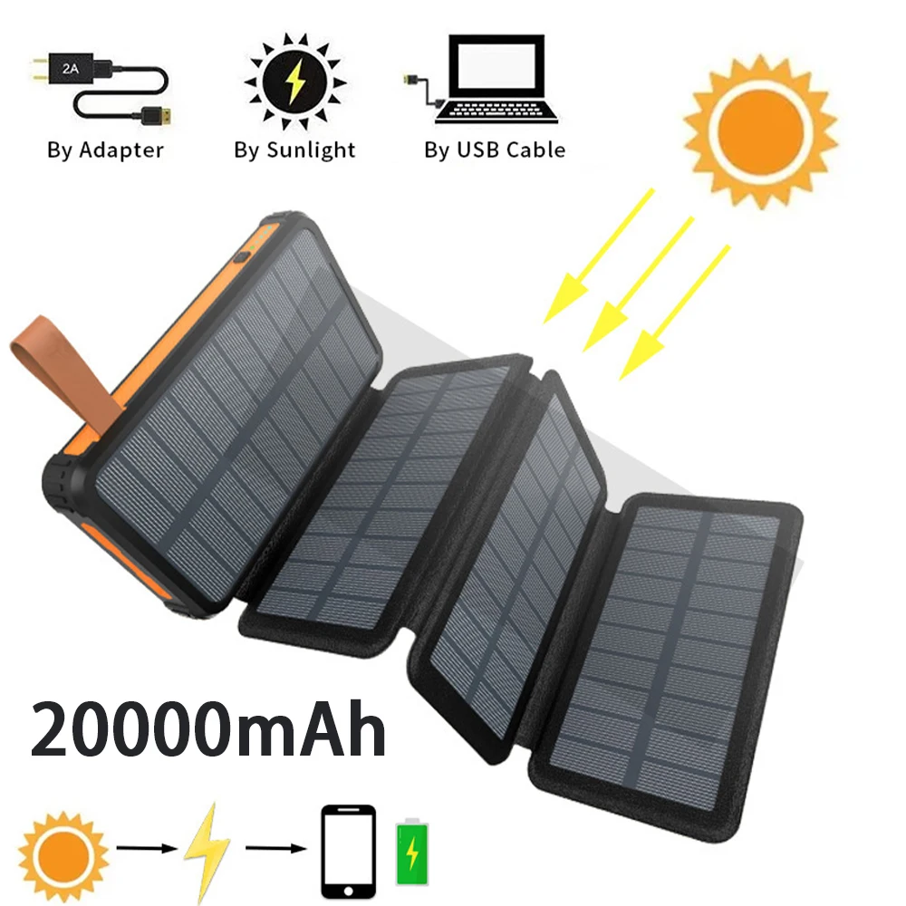 The Solar Power Bank 20000mAh redefines convenience and reliability for mobile device charging. Designed for travelers, commuters, and outdoor enthusiasts, this power bank combines cutting-edge solar technology with user-centered features to keep your devices powered up anytime, anywhere. Its robust 4-panel configuration ensures faster solar charging rates, while the ultra-high 20000mAh capacity guarantees long-lasting performance.