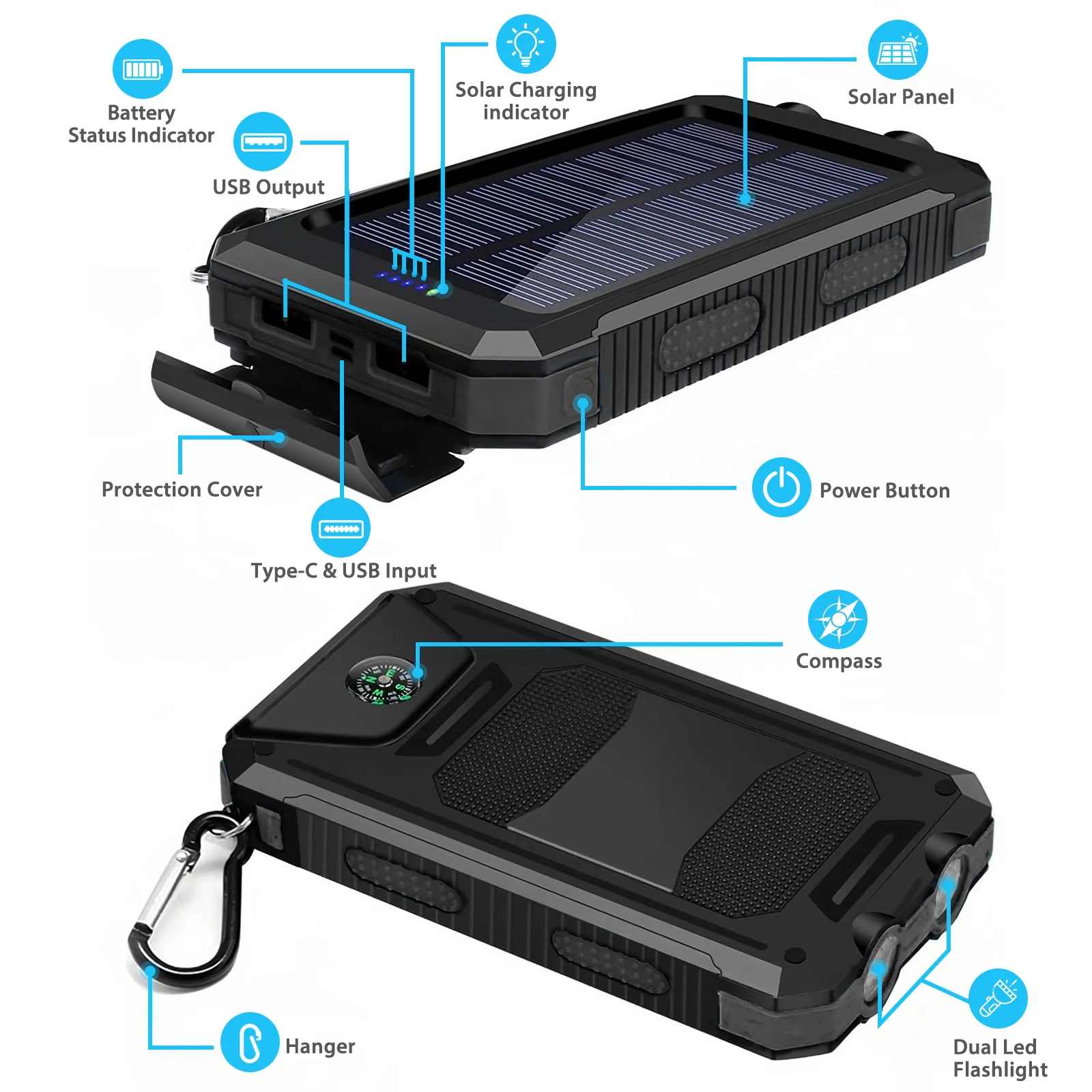 Designed for tough conditions, the Solar Power Bank boasts a rugged exterior that stands up to wear and tear. Its ergonomic design makes it easy to carry, while protection features such as overcharge, short circuit, and temperature control ensure your devices are safe during use. This power bank is crafted to endure, giving you peace of mind as you rely on it for your daily power needs.